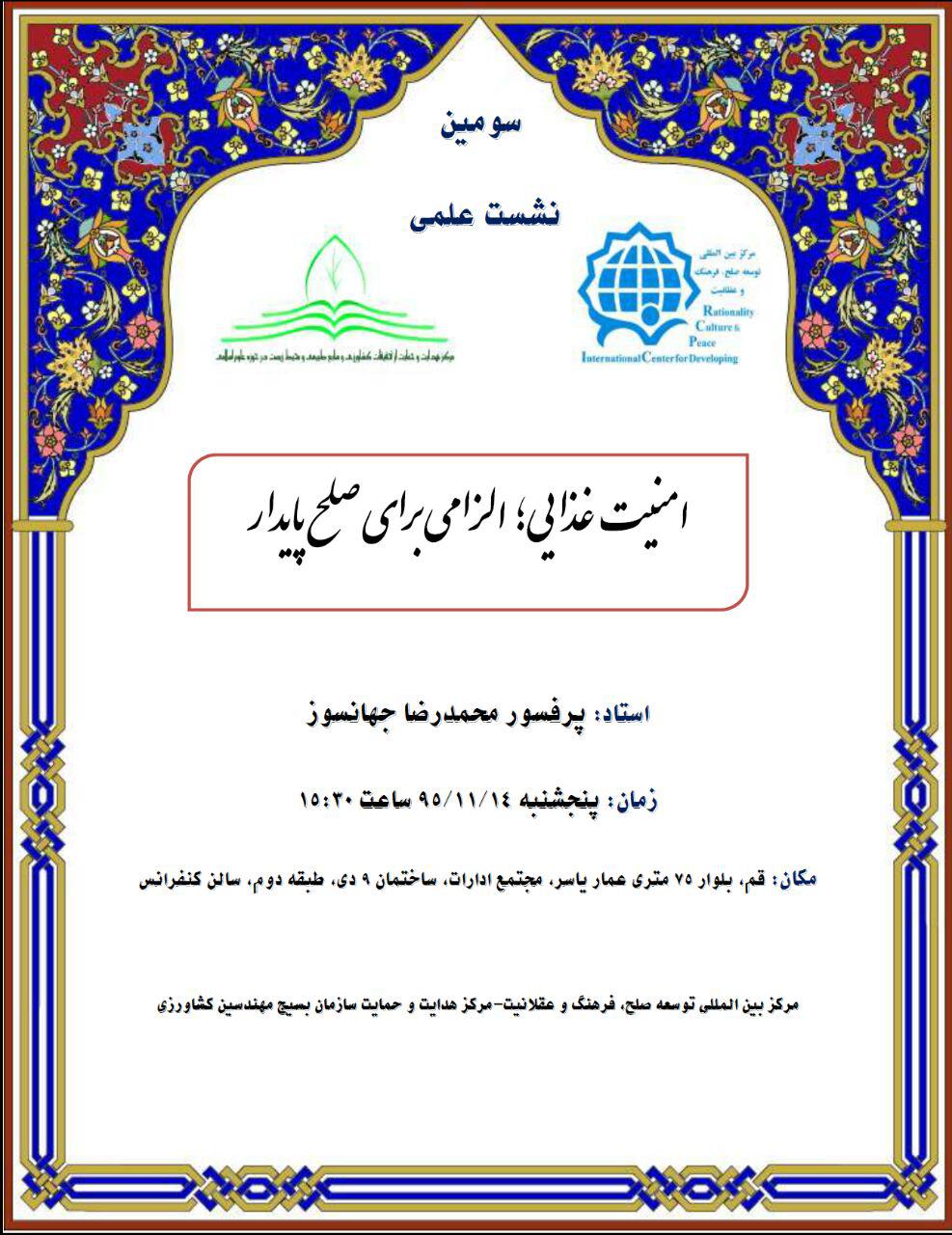 09 اسفند 1396 بازدید: 15899 فراخوان اولین کنفرانس بین المللی «صلح پژوهی» چاپ ایمیل ادامه مطلب: فراخوان اولین کنفرانس بین المللی «صلح پژوهی»