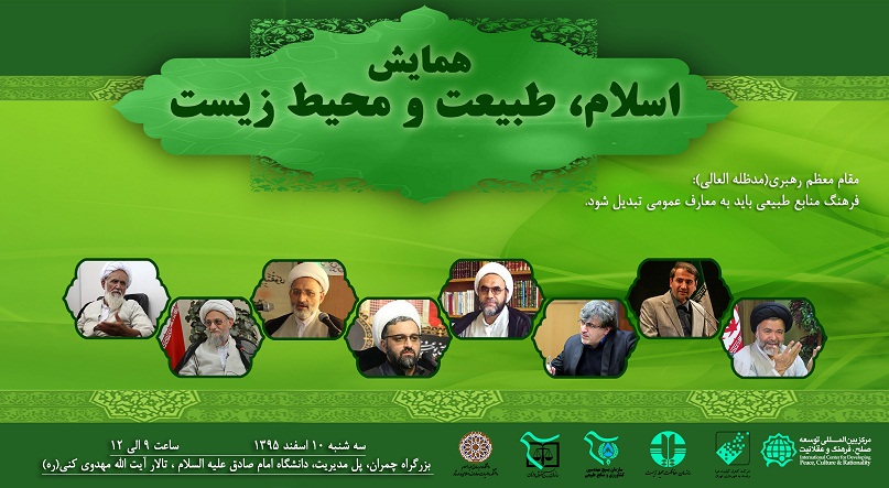 اولین همایش «اسلام، طبیعت و محیط زیست» روز سه شنبه 10 اسفند از ساعت 9 تا 12 در سالن آیت الله مهدوی کنی و با همکاری دانشگاه امام صادق علیه السلام، شرکت کنترل کیفیت هوای تهران، سازمان حفاظت محیط زیست، سازمان بسیج حقوقدانان کشور و سازمان بسیج کشاورزی و منابع طبیعی و همچنین مرکز بین المللی توسعه صلح، فرهنگ و عقلانیت برگزار می شود.